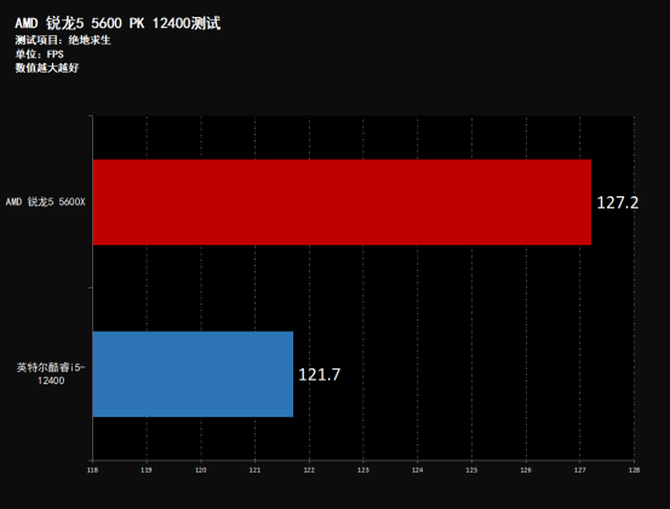 绝地求生是近几年出现的一款现象级游戏,这款游戏直接拉动了无数玩家升级电脑配置的强烈欲望,没有中高级的游戏显卡和双通道高频内存,基本别想畅玩这款游戏。所以想要畅玩这款游戏的玩家,还是需要一点配置的,在游戏性能方面,AMD锐龙5 5600领先Intel酷睿i5-12400约7帧。