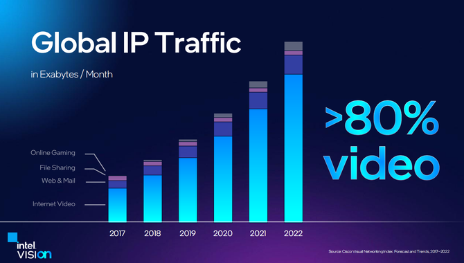 随着短视频的流行,不论是企业还是个人,对于视频处理的需求在不断提升,Intel可以通过AI性能对于视频信息进行各种分析,最终大幅提升后期处理的效率,帮助人们获得更好的视频效果,而对于视频的处理,需要大型的数据中心和强力的终端设备,在这两方面,Intel都走在行业的前端。
