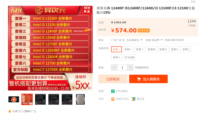 随着618年中购物节的临近,各大硬件都开始降价,今天我们就为需要打游戏的玩家推荐几款高性价比的游戏处理器,在推荐之前我们必须声明,本人和这些店铺没有任何利益关系,仅做信息收集,价格均为当时的实时价格,产品价格的波动是市场因素决定,以下信息均来源自网络。