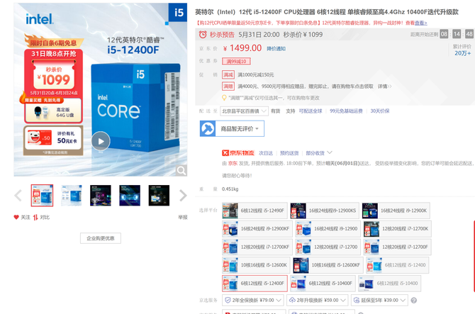 作为历年来销量都是最为出色的中端处理器,每一次的Intel酷睿i5都被追捧为最值得购买的处理器之一,全新的Intel酷睿i5-12400F处理器采用了全新的异架构设计,6大核的设计,性能足够出色,在应对1080P以及2K游戏方面,完全不会拖后腿,性能足够强悍,同时千元的价格表现,让这款处理器的性价比表现更好,配合上B660系列主板,能够胜任99%的游戏,目前这款处理器京东盒装31日晚8点秒杀价仅为1099元,叠加优惠券,可以做到更低,有需求的玩家不妨关注一下。