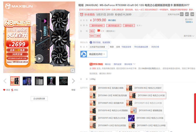 第二款:铭瑄电竞之心RTX3060游戏显卡