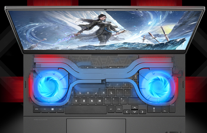 市面上很多游戏本明明配置很高,但很多时候玩游戏却不灵。其中很大原因就是散热效率低,芯片温度过高就会降频工作,这样游戏体验肯定会差。不过OMEN暗影精灵8 Plus游戏本搭载了惠普最高端的酷凉风暴散热技术,采用两进三出五风道设计,最高内置四根热管,以及超高密度的双风扇设计,搭配12V三相马达和液态轴承,将高效低噪的散热效果发挥到极致,保障双芯长久高效的性能输出。