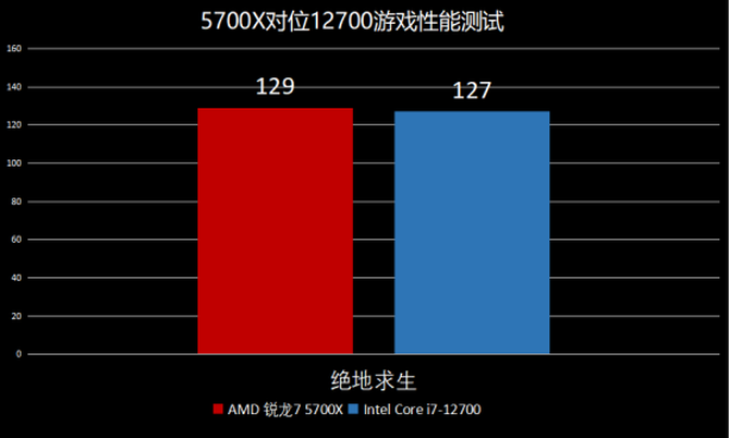 在绝地求生这款求生设计类游戏当中,我们可以看到,AMD锐龙 7 5700X领先幅度不大,基本和Intel这边保持一致,实际体验也没有太大的区别。