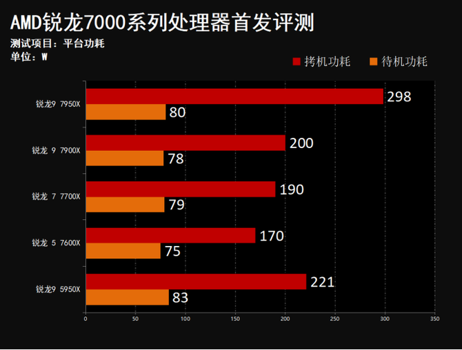 在满载烤机的情况下,AMD锐龙 9 7950X的满载功耗大概为220W左右,如果搭配一个旗舰级的游戏显卡的话,建议选择使用850W以上的电源进行使用。