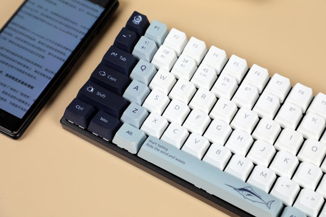 这款键盘的键帽材质使用了5面热升华的PBT材质,长时间使用依旧能够保证键帽的干燥,不容易打油,并且长时间使用依旧能够保证字符的清晰,手感也更好。