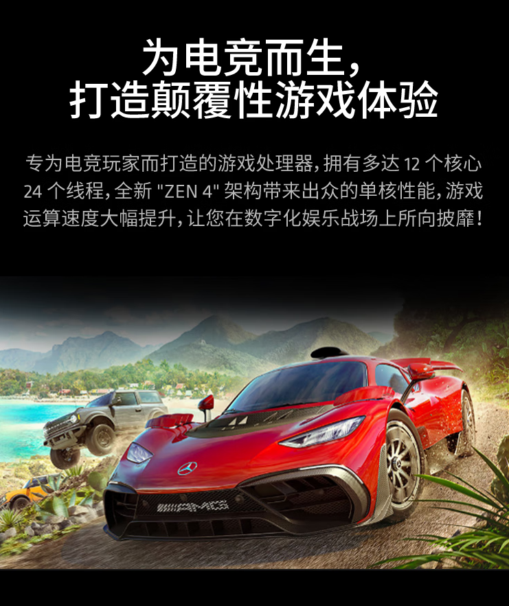 AMD 锐龙9 7900X处理器出色的单/多核性能,让游戏启动运行都顺畅无忧。12核心24线程的高规格配置,让游戏时刻保持流畅运行的同时还可以拥有更多后台软件体验,76MB的游戏高速缓存让您告别卡顿掉帧,拥有沉浸式的游戏体验。