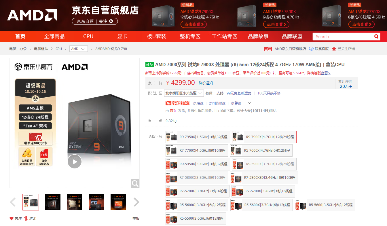 AMD 锐龙9 7900X京东购买链接: