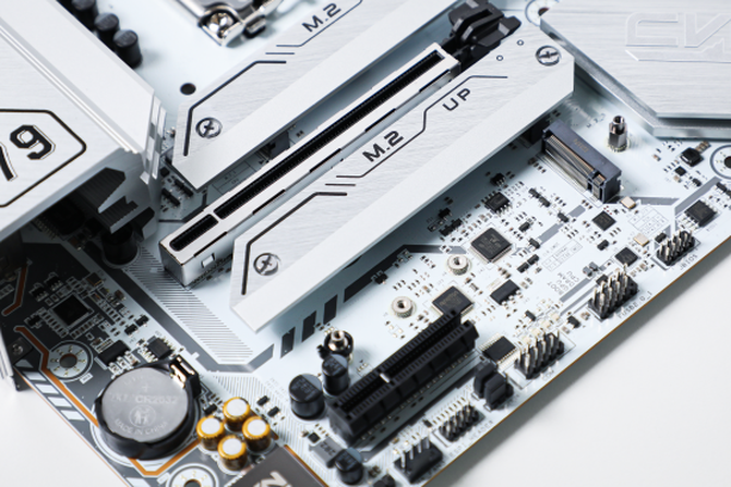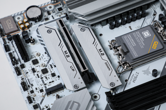 在PCIe插槽方面,七彩虹CVN Z790M FROZEN D5 V20提供了一个满速PCIe5.0x16插槽,一个为PCIe 3.0x4插槽,并且经过了金属加固,防止显卡过重造成主板过多的负担。
