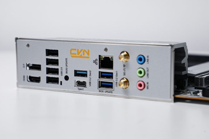 在接口方面,这款主板同样提供了1个DP 1.2接口,一个HDMI 2.0接口,支持双屏输出,还有1个USB 3.2Gen2 Type-C接口,1个USB 3.2Gen2 Type-A接口,2个USB 3.2Gen2 Type-A接口,4个USB 2.0接口,基本上满足了我们日常外接设备的需求,同时还有WIFI 6天线,支持无线和有线2种连接方式。