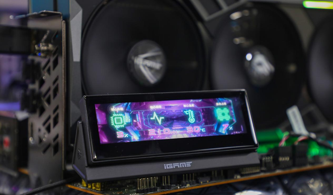 配件方面,作为旗舰代表,iGame GeForce RTX 4080 16GB Vulcan OC提供了显卡支杆,防止压弯主板,毕竟这一代的显卡散热器重量较大,另外还有一块LCD的磁吸智能显示屏,并且可以自定义显示效果,并且还有可更换的磁吸式RBG灯光组建,让玩家打造独一份的酷炫桌面或者主机,可玩性非常高。