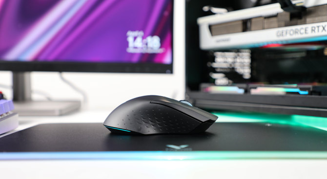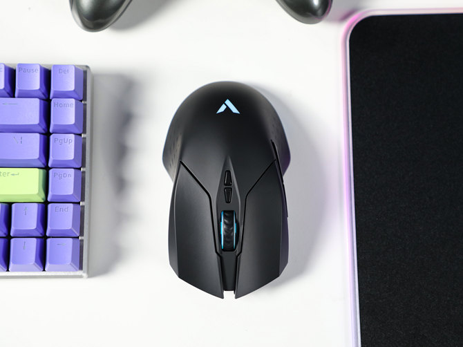 外观方面,鼠标俯视看上去造型十分犀利,两侧的腰线收的很窄,非常有速度感和电竞感,并且这种外观造型能够方便用户更好地抓握,在进行激烈的MOBA类游戏的时候,让玩家的操作可以更为精准,实现更好的游戏体验。