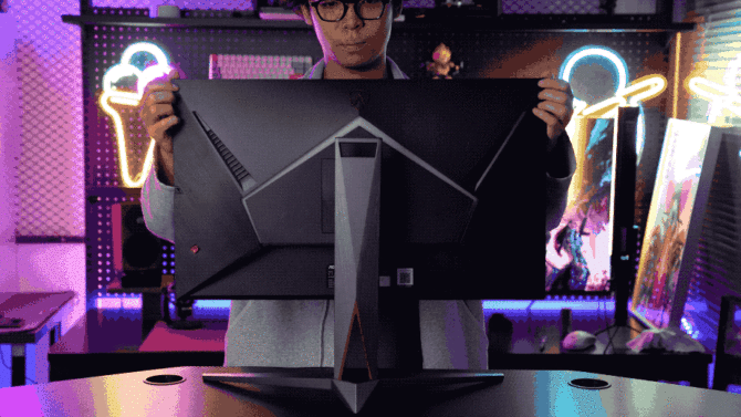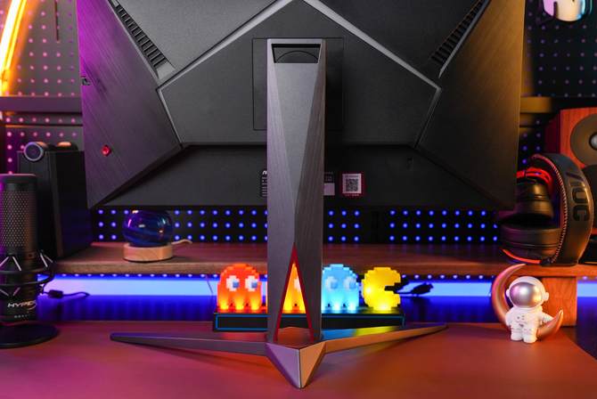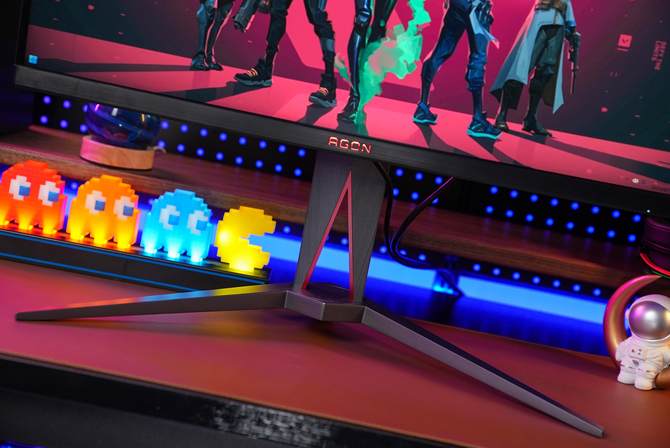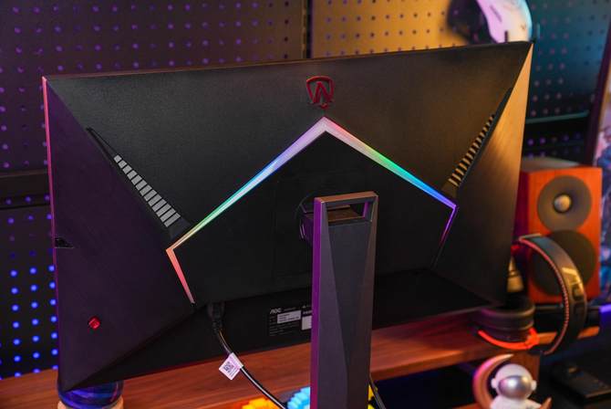 AG275QXPD 的背部装饰有AGON Logo 以及 RGB 灯带,并支持RGB 声光同步。