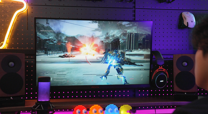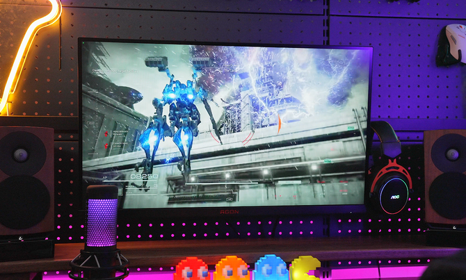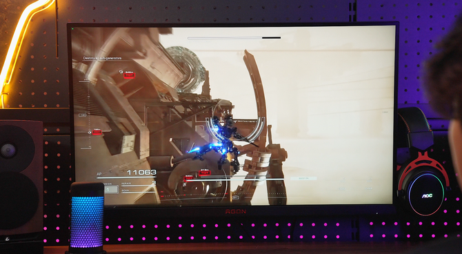既然是电竞显示器,那游戏肯定是绕不开的。凭借 2K分辨率+180Hz的超高刷新率,用 AG275QXPD 玩射击类游戏的体验自然是极为不错的,这里我们选用了近期发售的《装甲核心6》这款游戏进行测试。这款游戏主打的就是速度感,可见在激烈的机动环节中,画面也不会出现拖影,时刻保持清晰稳定。这样出色的表现,对电竞游戏的体验提升可以说是立竿见影的。