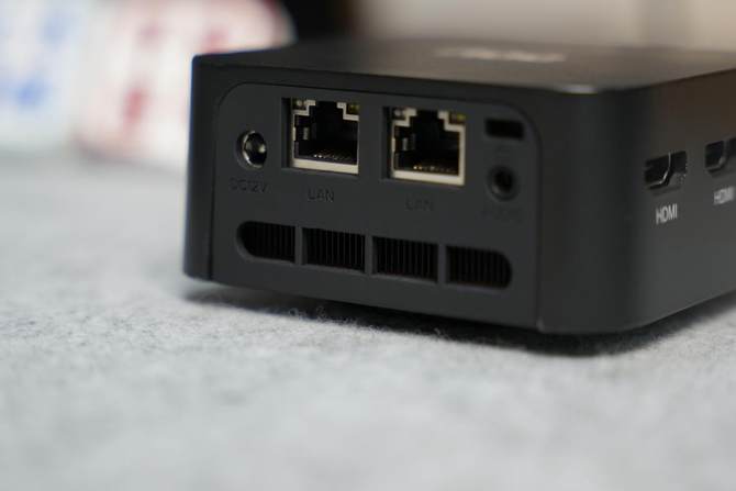 其中,3个HDMI接口和两个千兆网口的接口配备,让这台迷你主机大有作为。利用3个HDMI接口,使其能实现最 高三个显示屏同时输出画面,多屏办公的效率高。而两个千兆网口更是让这台迷你主机的可玩性大大提高,无论作为低功耗的软路由使用,还是作为一个小型NAS服务器,甚至还可以让企业办公实现内外网分离管理,这些功能即便在很多台式主机上都很难实现。