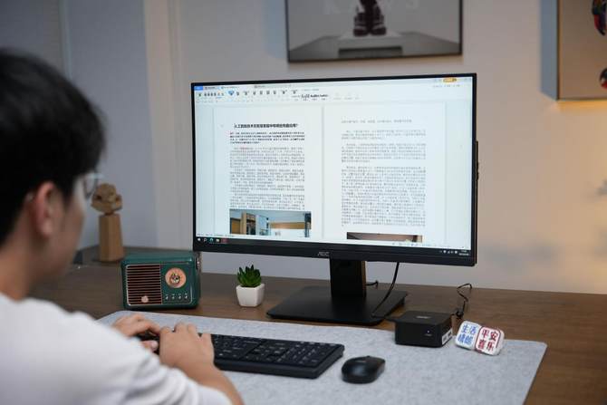 这段时间我主要使用AOC MOSS小苔藓M1迷你主机用来书房观看视频,实际体验下来,主机小巧方便移动,开机和操作响应速度快,多屏输出方便,强烈建议配合桌面音响,提供更加沉浸式的观影体验。