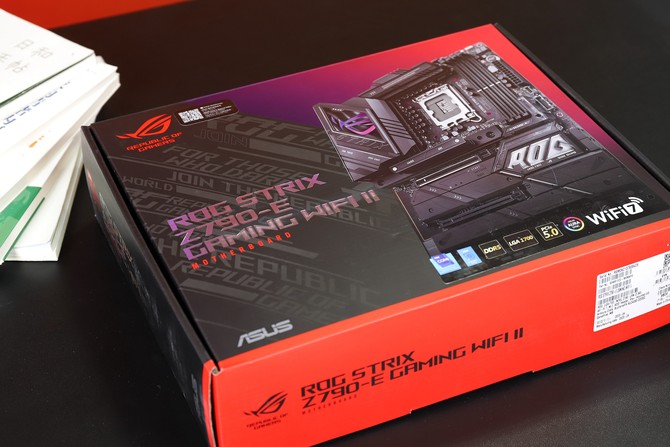 所以,在拿到这款英睿达T700 SSD时,我们也是几经波折,找到了这款ROG Strix Z790-E Gaming WiFi Ⅱ 主板,没错,它配备了5个M.2插槽,其中一个支持PCIe 5.0 M.2,而且设计了便捷卡扣,以及配备了散热马甲等,无需工具就能拆装。
