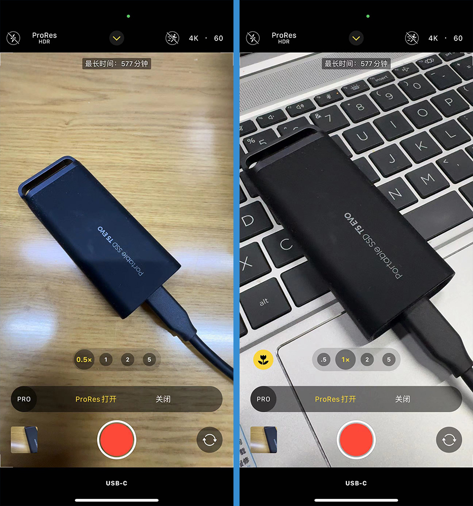 后续我们使用苹果iPhone 15 ProMax外接录制ProRes格式的4K60FPS高清视频,显示还可以录制将近600分钟的时间,这对于内容创作者来讲,通过手机拍摄后期创作的话,三星T5 EVO超大容量的8TB存储空间,可以存放更多的视频素材,并且录制完毕之后,还可以将这些素材直接拷贝到电脑上进行后期处理,大大提升了内容创作的便利性,而且8TB海量固态硬盘也是目前市面上独一份,适合非常多的内容创作者选择。