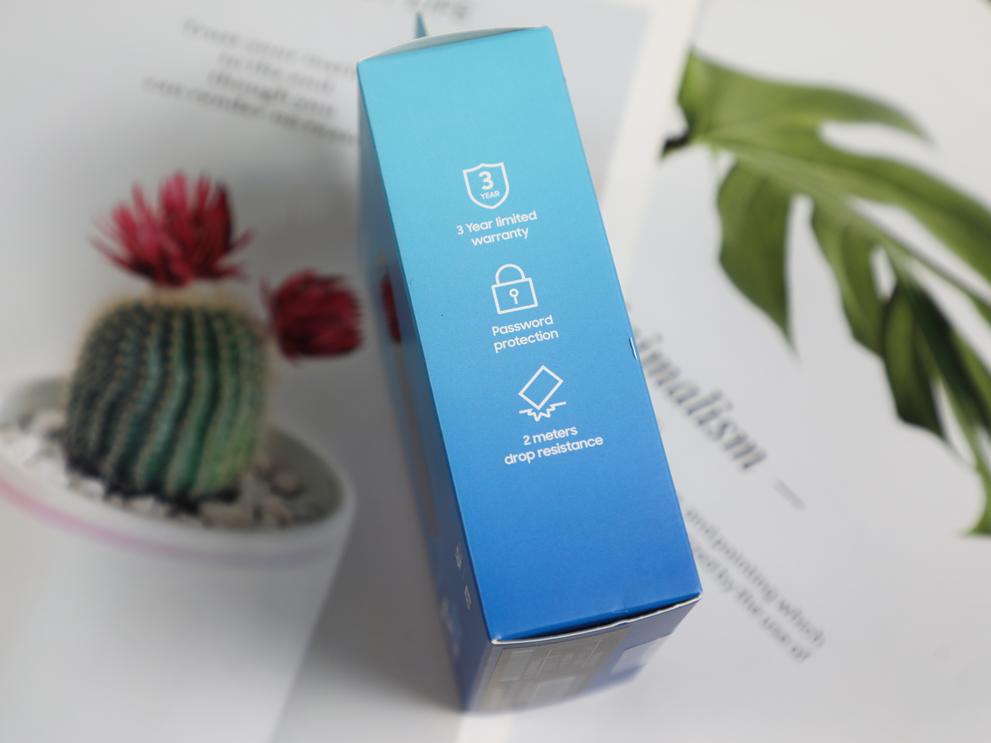 三星T5 EVO享受3年有效质保,并且支持加密技术,并且由于是固态硬盘,内部结构有着先天的优越性,让三星T5 EVO能够抵抗一定的冲击,2米抗摔,应对日常一般的震动、跌落一点问题没有。