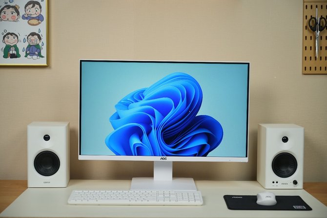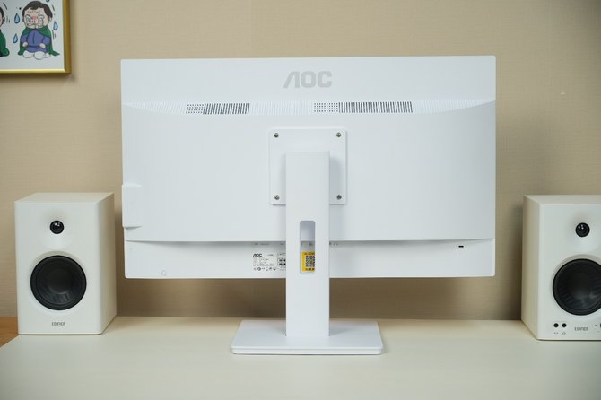 再来看看外观方面。AOC大师926一体机的外观采用的是简约风设计,整机以纯白色为主色调,正面面板、背面机壳、支架底座均为纯白色,能融洽的搭配各类风格的居家环境。为突出简洁大气的风格,AOC大师926一体机采用“一机一线”设计,仅用一条电源线就能保障机器运行,而且支架上还配置圆孔来辅助理线。简洁桌面,从AOC大师926一体机做起。AOC大师926一体机还支持壁挂,方便用户使用壁挂支架,解放桌面。