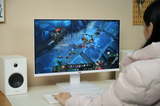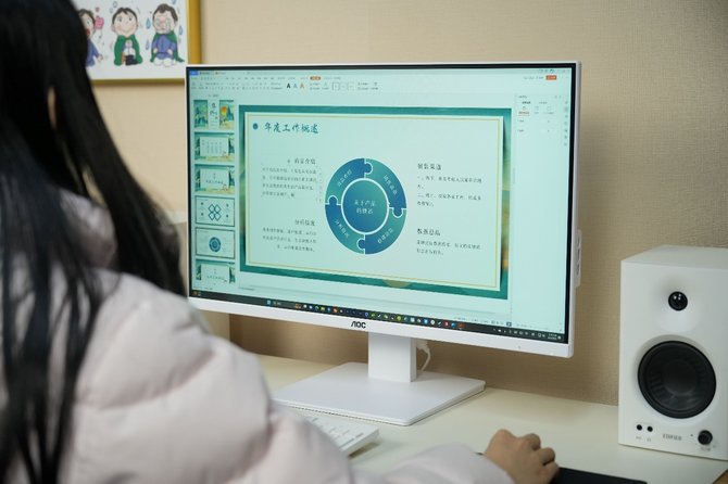 第 一眼看到AOC大师926一体机,就被它27英寸的超清大屏所震撼到。平时用惯14英寸的笔记本,遇到AOC大师926一体机便会沉浸在这块炫彩大屏之中。AOC大师926一体机采用了一块2,560x1,440分辨率的27英寸IPS显示屏。众所周知,AOC 作为全球知名的专业显示设备提供商和品牌商,曾连续5年出货量均超过40%的增长,在显示屏领域拥有着出色的技术和品质保障。AOC大师926一体机采用的屏幕自然是自家旗下的优秀硬件。AOC大师926一体机的屏幕还有广色域显示、三面2mm超窄边框加持,整体观感十分舒适,而且色彩还原度高,清晰明亮,无论是办公学习,还是休闲娱乐,都是毫无压力。