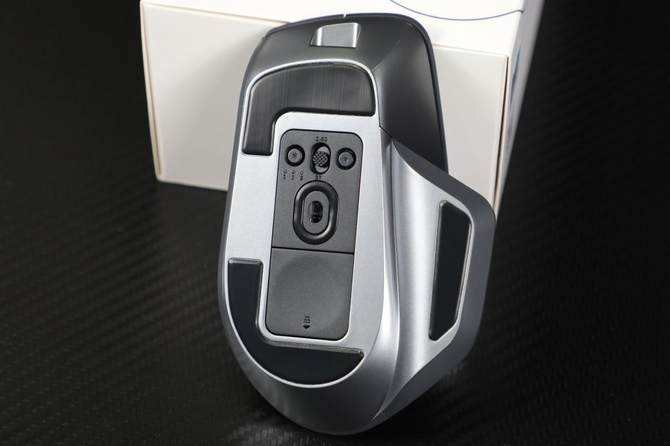 来到底部我们可以看到,大面积的特氟龙贴脚,能够带来更为丝滑的滑动体验,我们试了传统鼠标垫、硬质桌面、木质材料,滑动都非常顺滑,完全没有迟滞感,配合上鼠标100g左右的重量(Mini为88g),不会有费力的感觉。