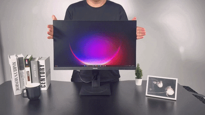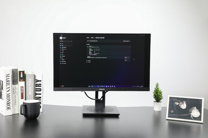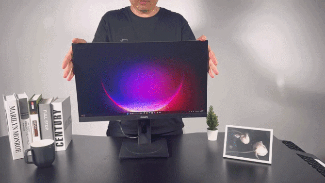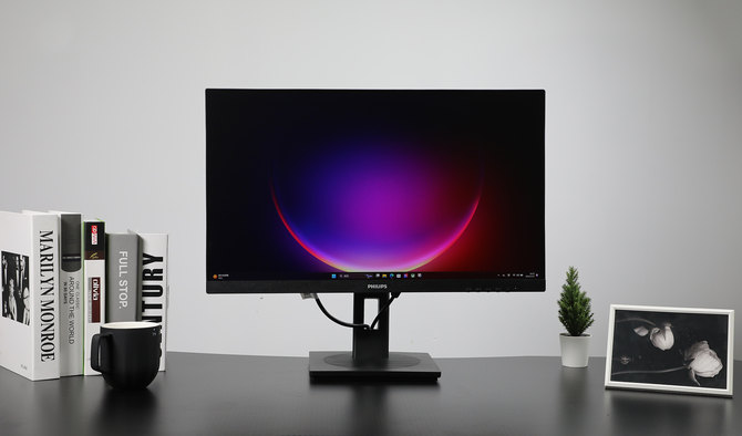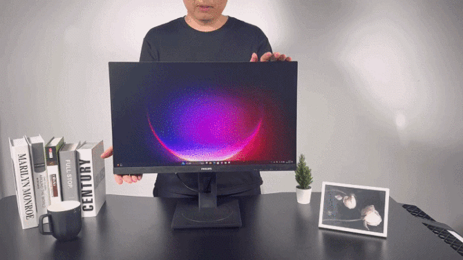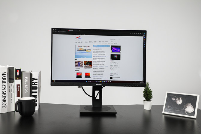 飞利浦245S9RB的屏幕尺寸采用了23.8英寸的规格,是目前市面上办公显示器的主流,配合上三面窄边框的设计,视觉冲击力表现不错。