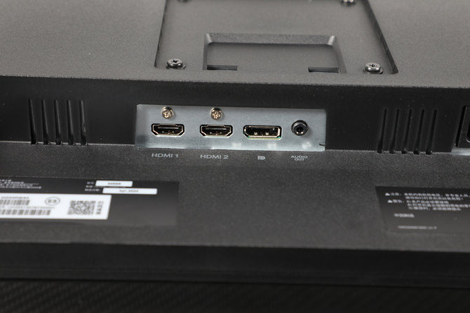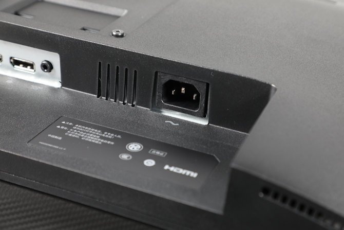 接口方面,这款显示器提供了2个HDMI和1个DP接口以及一个3.5mm音频接口,并且电源采用了内置的设计,告别外接大疙瘩,必须好评。