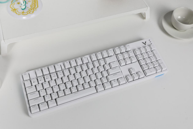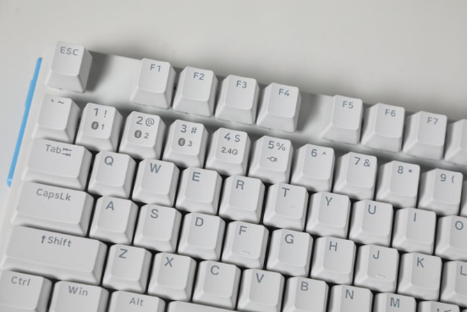 雷柏V500PRO多模键盘的键帽排布符合人体工学设计,键帽的排列和高度在日常打字的时候,能够提供更为舒适的打字体验,并且PBT材质的键帽,手感更为细腻、干燥,长时间使用也不容易出现打油的情况。