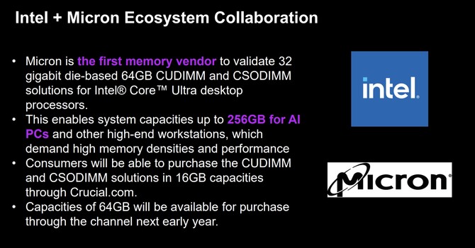上市情况,Jon Weech 透露,除了推出 16GB DDR5 CUDIMM/CSODIMM 外,更高容量的版本也已经过验证。32GB 和 64GB 版本将于 2025 年推出。无论是个人还是企业,迁移到 64GB 将真正释放 AI PC 的全部潜力。
