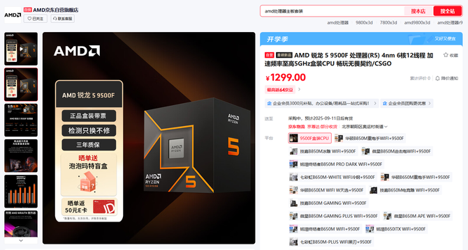 目前AMD 锐龙5 9500F处理器在AMD京东自营旗舰店上的首发报价是1299元,综合它的性能表现来看,这样的定价已经让它成为了新晋千元级最值得DIY玩家选购的产品,而且首发期间的福利活动多多,真的值得大家下单。