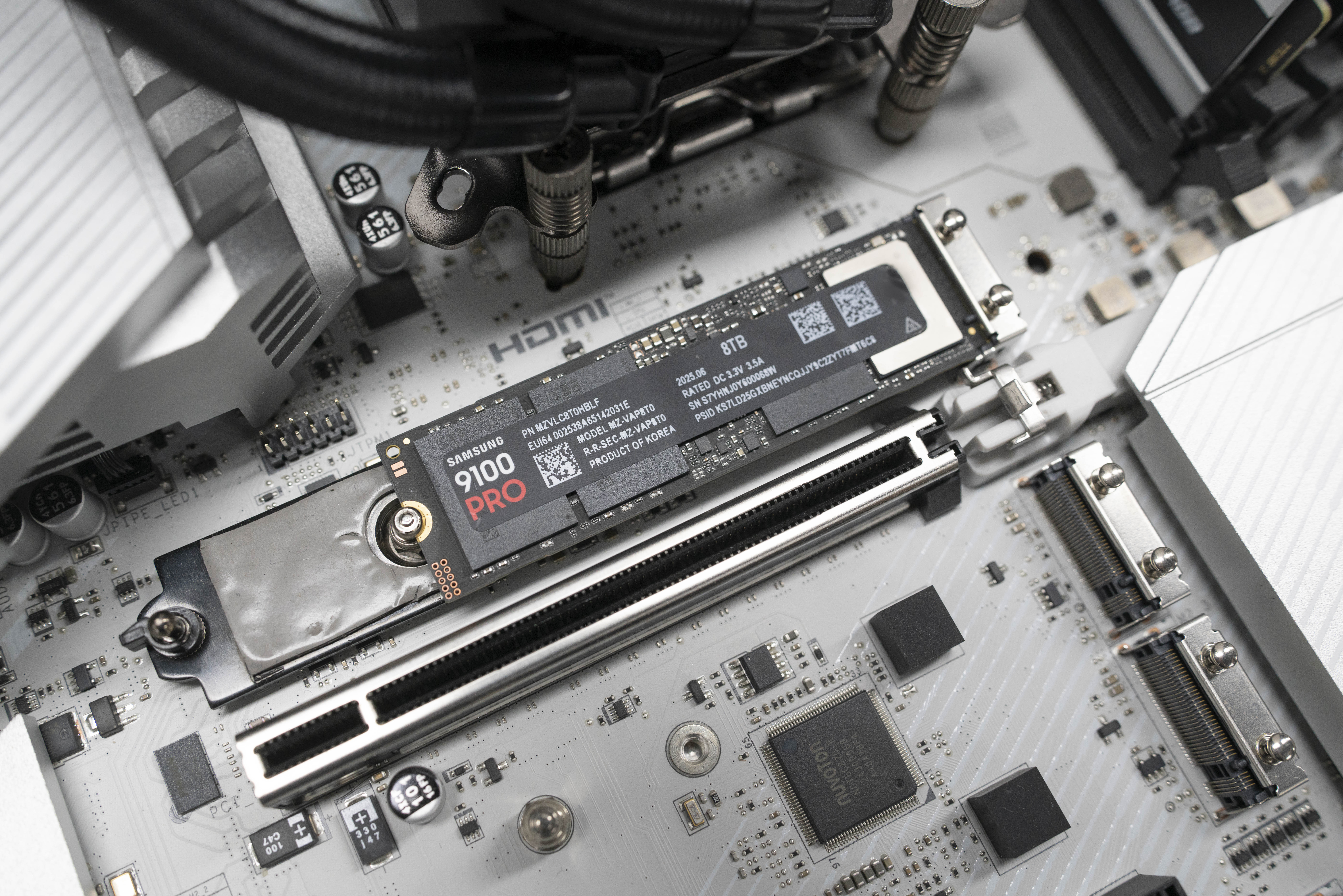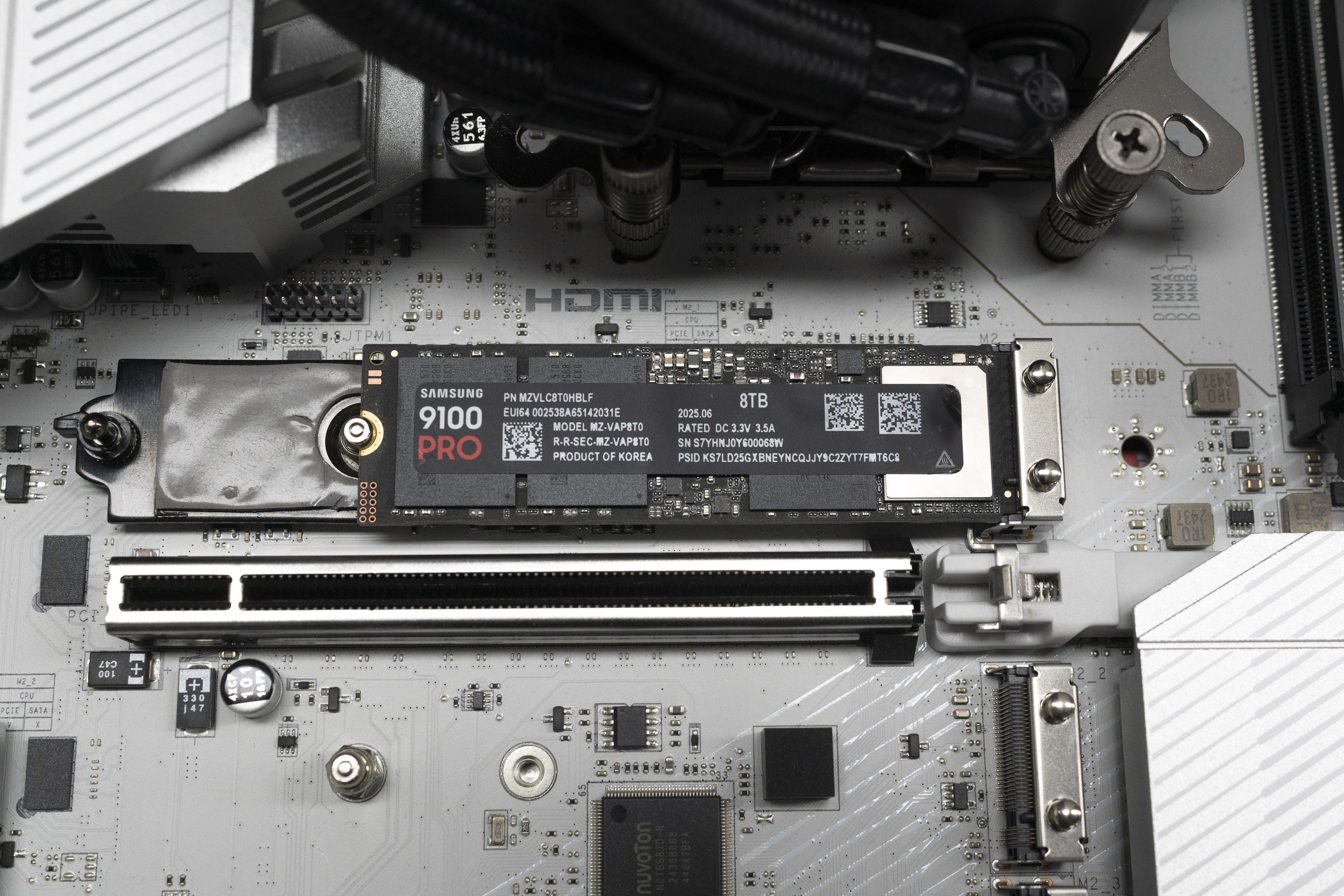 在这场升级浪潮中,三星凭借从 V-NAND 闪存到主控的全链路自研优势,持续引领存储行业。从 SATA 时代到 PCIe 4.0 的 990 PRO 系列,三星始终以稳定性和性能调校树立标杆。步入 PCIe 5.0 时代,三星推出全新旗舰 —— 9100 PRO 系列,作为 990 PRO 的继任者,带来更高带宽与能效,并在散热与固件优化方面全面升级。
