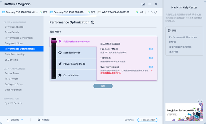 对于旗舰级存储产品而言,硬件性能只是体验的一部分,完善的管理工具同样至关重要。作为存储行业的领导者,三星为其全线 SSD 产品提供了专属管理软件——SAMSUNG Magician三星魔术师。