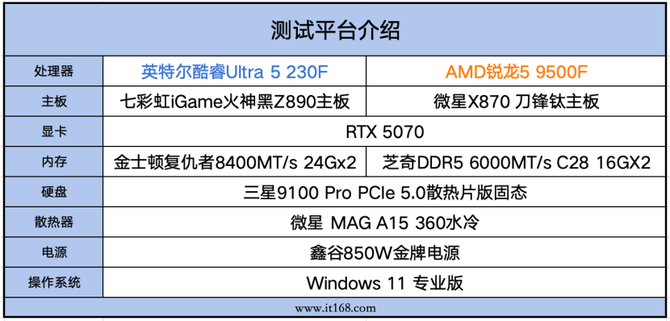 分别有AMD锐龙 5 9500F和英特尔酷睿Ultra 5 230F。