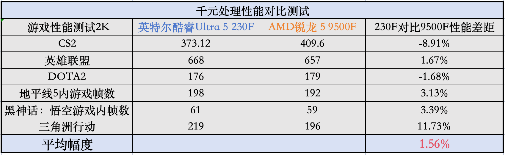 所以在千元级的处理器方面,两家的中国特供版处理器都非常给力,但是如果想要更加全面的性能体验,并且考虑后续的拓展性和潜力,实测下来,英特尔酷睿Ultra 5 230F的表现更加全面,在千元级这个价位,对比9500F的话,更值得推荐。