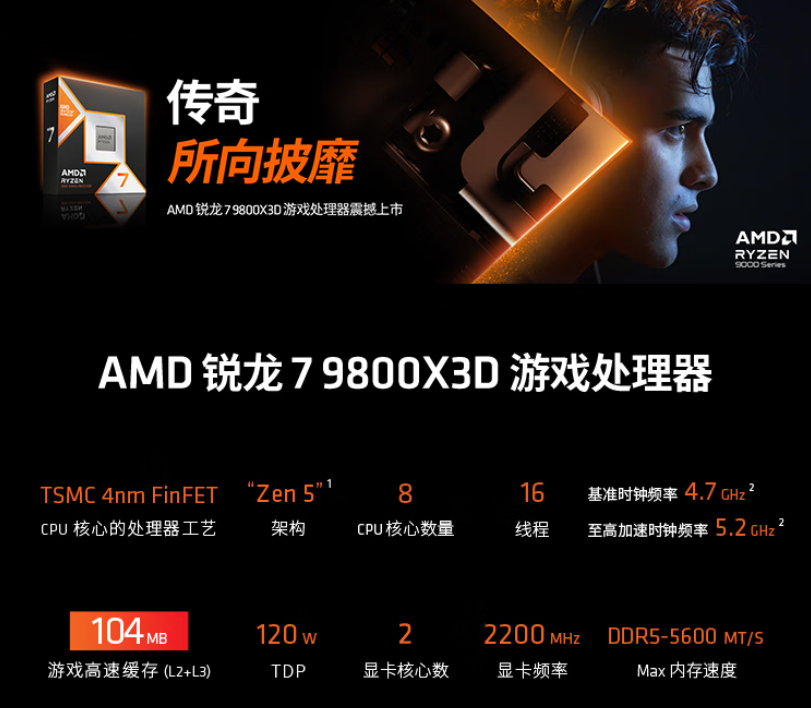 AMD 锐龙7 9800X3D处理器购买链接: