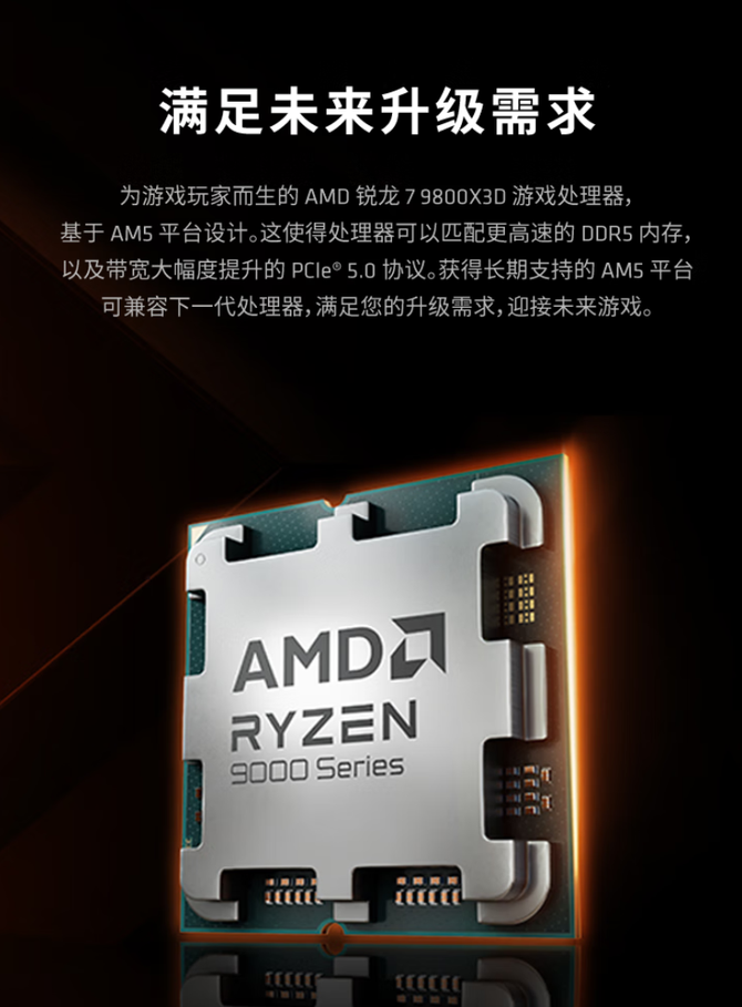 在扩展性与兼容性方面,AMD 锐龙7 9800X3D处理器采用了AM5接口,支持DDR5内存,最大容量可达192GB,并兼容现有600/800系主板。AMD承诺AM5平台将支持至2027年+,为用户提供了长远的升级空间。