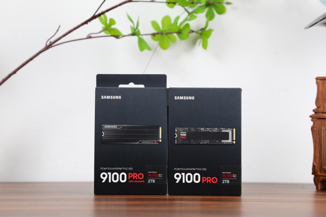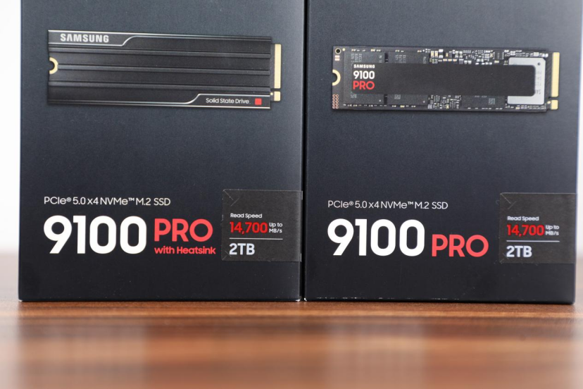 先说说最直观的外观和兼容性,毕竟买硬盘首先得 “能装上、看着顺眼”。三星 9100 PRO 这次首发了两个版本:普通版和带散热片版,普通版是标准的 2280 身材,厚度仅 2.38mm,单面颗粒设计让笔记本用户也能轻松升级,不用怕空间不够装;带散热片版适合台式机,也能直接装在 PS5 上,玩主机游戏也能享受到高速加载的爽感。而且它延续了三星家族的酷炫设计,黑色机身搭配标志性的红色 “PRO” 标识,印刷质感和材料做工都透着大厂范儿,就算装在透明机箱里,也是颜值担当。