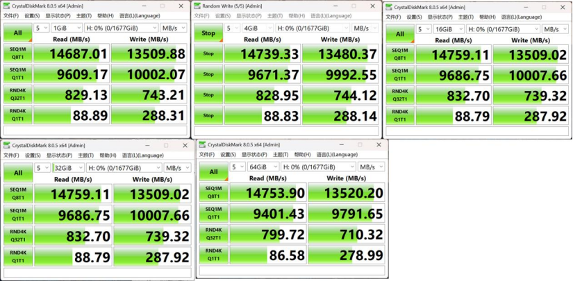 玩 3A 大作时,以前加载《战地风云 5》要等十几秒,用它能飙到 1549MB/s 的读取速度,眨眼间就能进入游戏;做视频剪辑、3D 渲染时,超大文件导出不再卡进度条,4K 素材拖拽流畅到飞起;就算是日常开机关软件,也能体验到 “秒开” 的快感,再也不用等系统慢悠悠加载。而且实际测试更惊喜,CrystalDiskMark 中它的顺序读取突破 14750MB/s,超过官方数据,在目前市售 PCIe 5.0 固态里妥妥的拔尖水平。