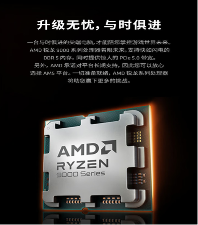 AMD 锐龙7 9700X处理器出色的性能可以完美且稳定运行目前市面上主流的3A大作和竞技网游,让玩家们保持更好的游戏状态,彻底告别卡顿掉帧,拥有沉浸式的极致游戏体验。更值得一提的是,AMD 锐龙7 9700X处理器在游戏时温度低功耗更低,搭配主流风冷散热器即可稳定输出,为玩家提供持久可靠的性能保障。ZEN5架构锐龙处理器、DDR5内存与Gen5 SSD的组合,已经成为目前PC硬件升级的终极答案,三者通过技术突破与协同优化,在性能、能效和用户体验上实现全面飞跃。