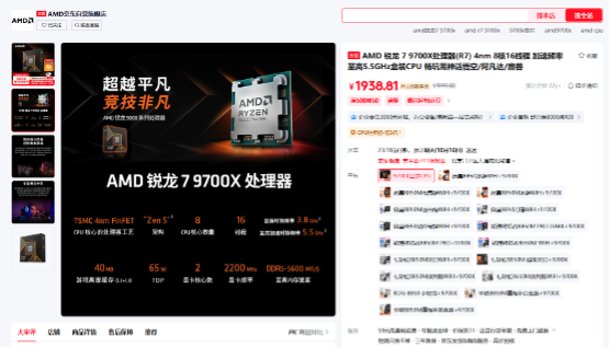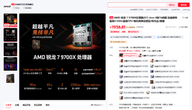 随着京东商城的双十一购物节预热阶段的开始,广大DIY用户们最适合攒机的一个月已经到来了,想要最直接提升自己的游戏体验,那就一定要给自己的台式机升个级了。准备2000元预算给到CPU的玩家们,今天就给大家推荐这款最适合选购的产品-AMD(超威)锐龙7 9700X处理器,作为近期DIY市场的爆款产品,它拥有出色的性能、超低的功耗与散热设计、广泛的兼容性与扩展性、绝 对是2000元价位的真神,下面就为朋友们详细来介绍一下。