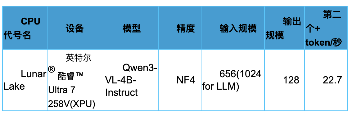 为确保用户能够获得更流畅的AI体验,英特尔在酷睿Ultra平台上,对Qwen3-VL-4B 模型进行了创新的CPU、GPU和NPU混合部署,充分释放了XPU架构的强大潜力。通过精巧地分解并优化复杂的视觉语言模型负载链路,并将更多负载精准调度至专用的NPU上,此次英特尔的Day 0支持实现了: