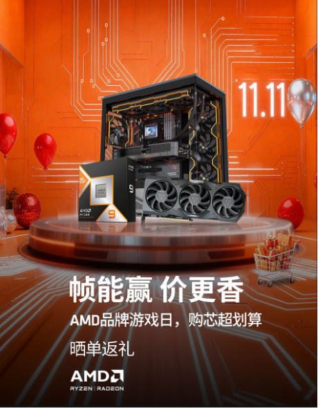 今年京东商城的11.11抢先购将于今晚8点正式开始,相信广大网购爱好者已经期待很久了,大促终于要进入一个全新的阶段了。对于DIY玩家来说,近期攒新机或者为自己的硬件平台进行升级都是特别好的时机,AMD(超威)同步开启的“帧能赢 价更香 AMD品牌游戏日”绝 对是大家不容错过的重磅活动,近期准备购买硬件产品的DIY用户都能更加合理的规划选购节奏,下面就为大家整体介绍一下此次AMD的活动。