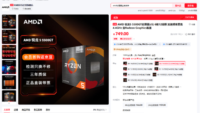 AMD 锐龙5 5500GT处理器京东购买链接: