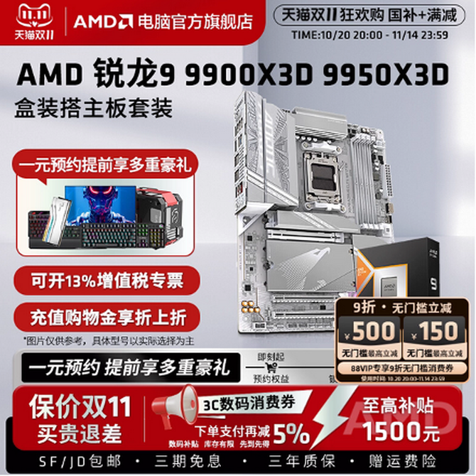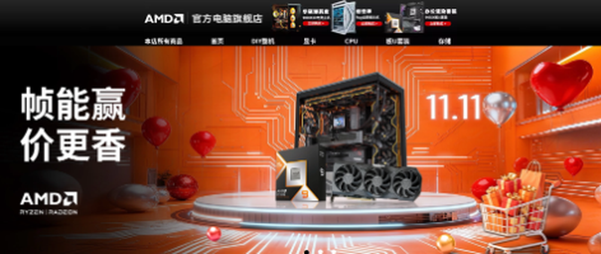 今年天猫商城的双十一大促启动的非常早,而且每个阶段的活动都非常精彩,在AMD(超威)官方电脑旗舰店上,一场“帧能赢 价更香”的硬件商品集合大促正在火热进行中,店铺中的AMD锐龙处理器,板U套装,显卡以及整机专区都已经备好了库存等待着DIY用户们的抢购,下面为大家详细介绍。