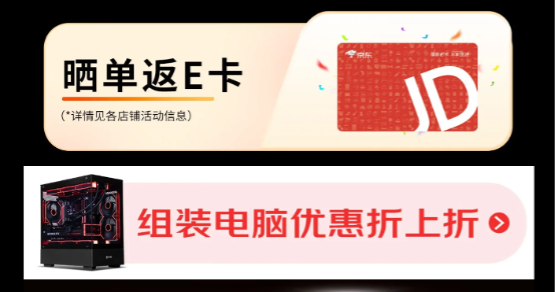 当然对于不熟悉DIY的朋友们也可以直接前往整机专区,百亿补贴优惠,大额满减券领取之后,还有晒单返京东E卡的活动。这些ESI合作伙伴打造的整机均以AMD锐龙处理器为核心而且各具特点,可以满足不同人群的使用需要,感兴趣的用户可以直接在活动页面好好挑选起来,购买后再来参与晒单活动。