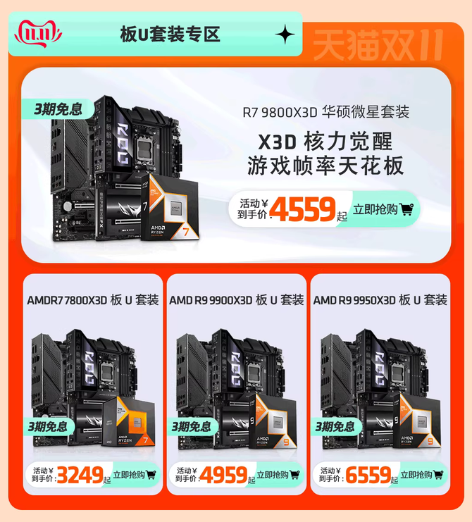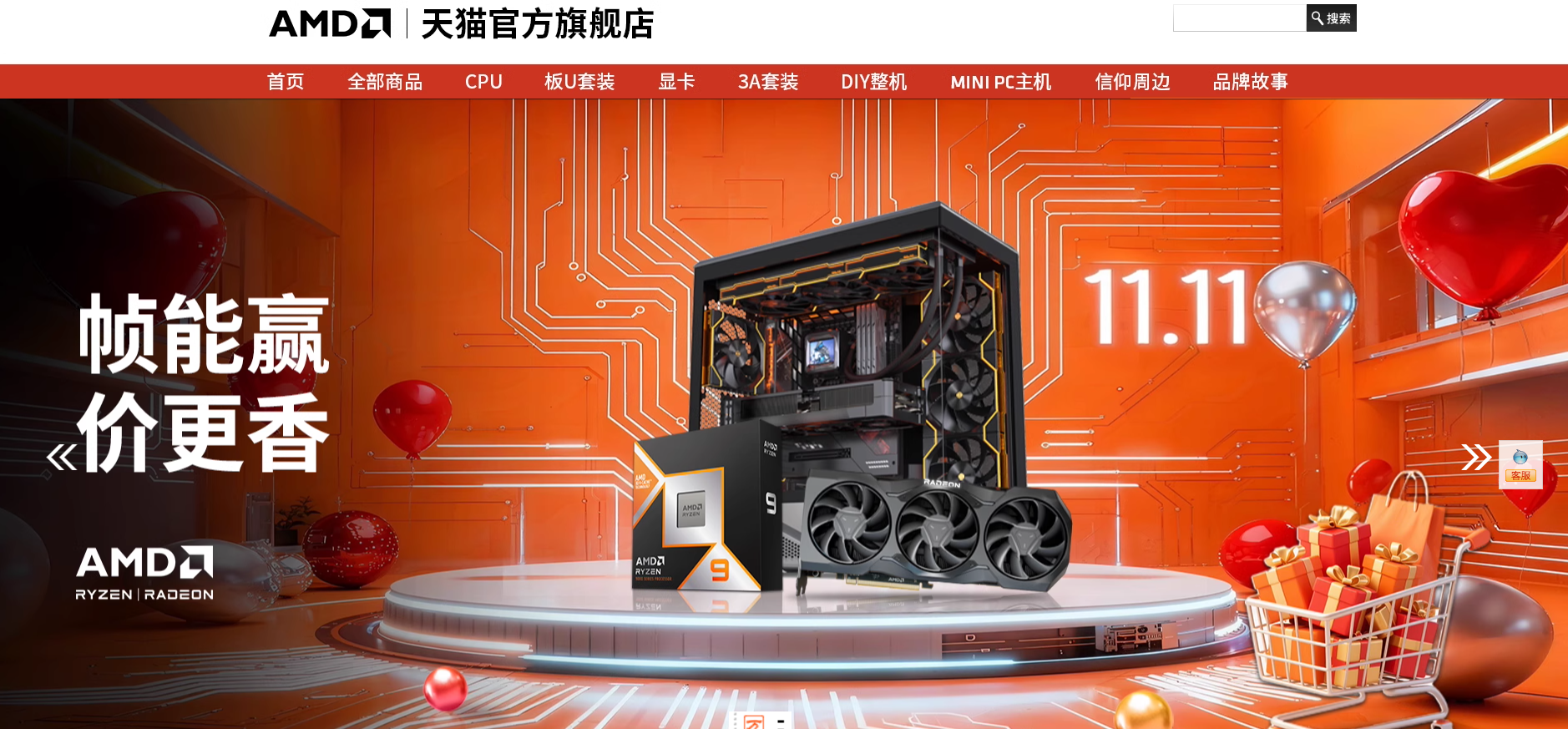 AMD官方旗舰店活动链接:https://amd.tmall.com/?spm=a1z10.1-b-s.w15914064-24241595732.2.505c335bEwNP6T