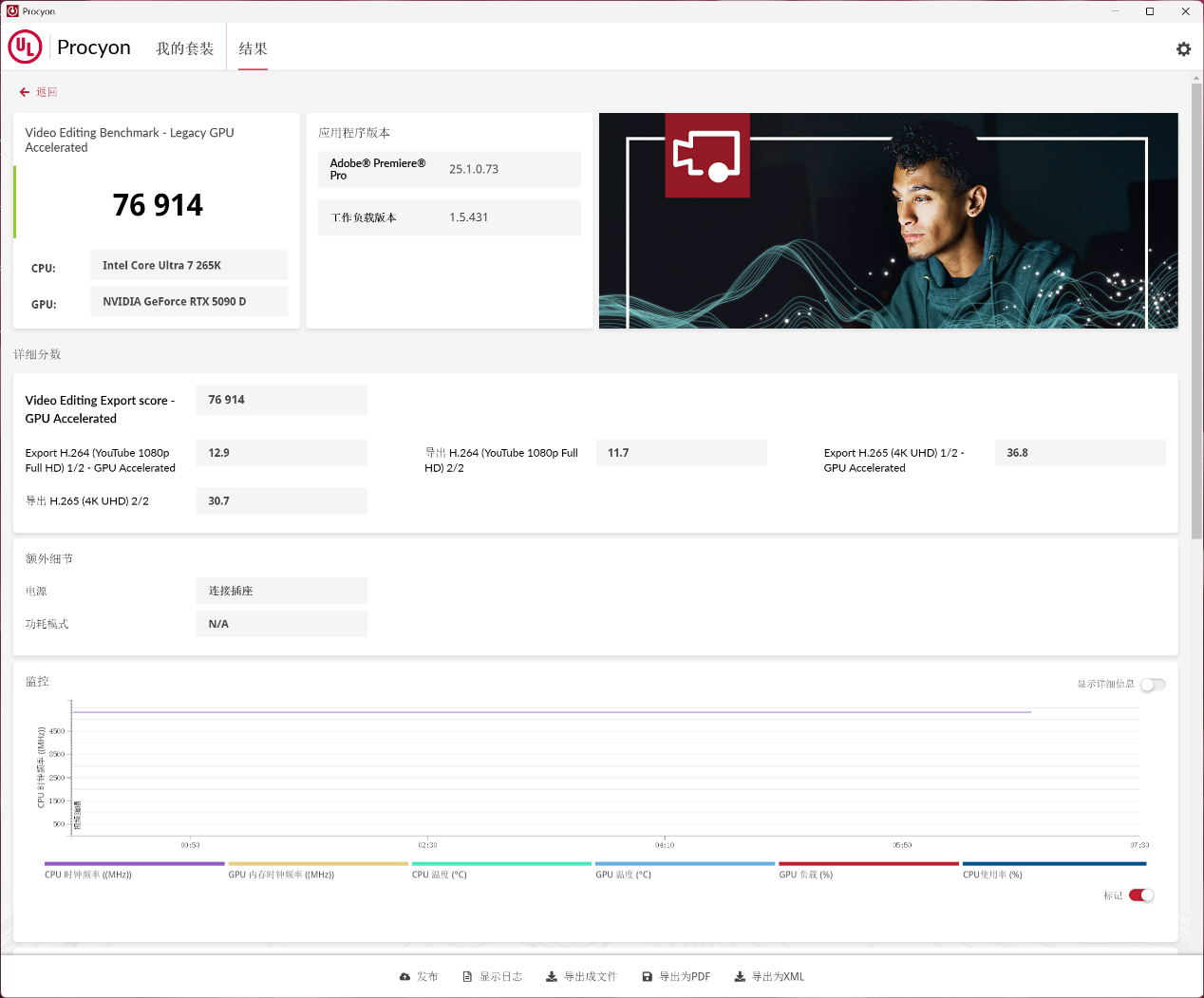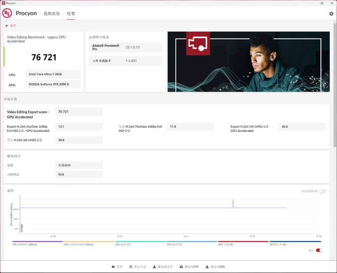 对于创作者而言,视频剪辑是日常工作。所以Procyon的视频跑分同样能够体现电脑的性能,尤其是高性能、大容量的内容,能够在多任务处理中带来高效的工作。