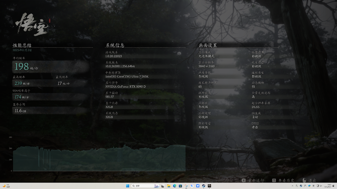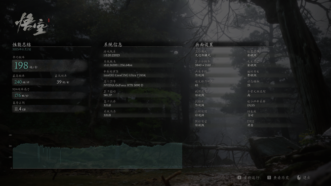 同样的设置运行《黑神话:悟空》,虽然平均帧率都是198帧,但是最高、最低频率都有所降低,毫无疑问,更高性能的内存配置,能够给游戏的流畅运行带来助力。现在的大型游戏对电脑硬件的性能要求越来越高,游戏场景变得更加复杂和逼真,拥有大量的高清纹理、精细的模型和动态光影效果,同时,游戏中的多任务处理需求也日益增加,这些都对内存的性能提出了极高的要求,需要内存具备高速的数据传输能力和低延迟的响应速度,以确保游戏能够流畅运行,避免出现卡顿和掉帧的情况。