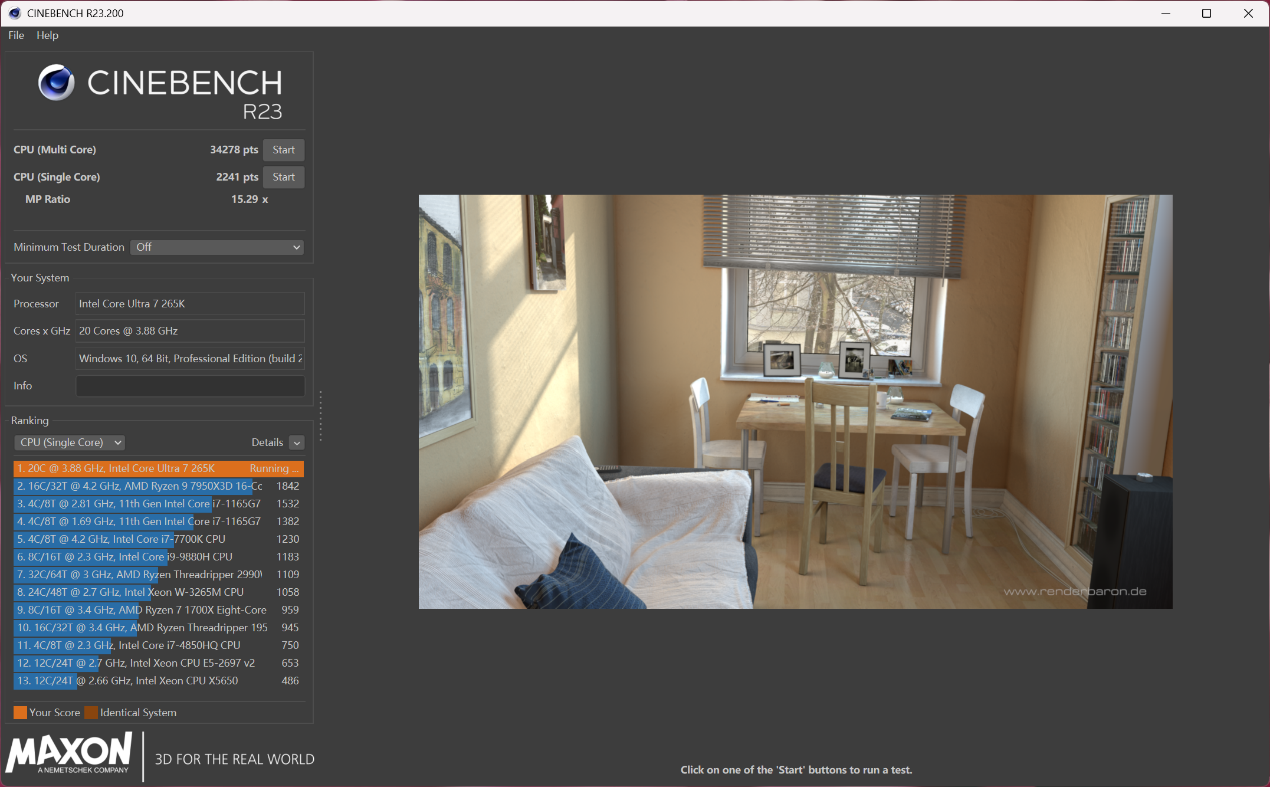 R23 的单核成绩2241pts,多核成绩34278pts,降低了约4%。