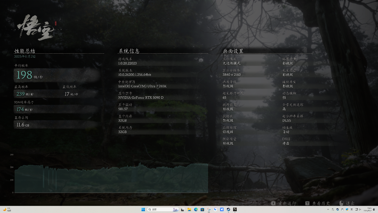 英睿达DDR5 Pro OC 6400 CL32 内存套装本身就是为性能而生,这对提升游戏帧率以及降低延迟,有着至关重要的作用。在《黑神话:悟空》的游戏测试中,4K分辨率,影视级画质,平均帧率达到198,但是最高帧率达到240帧,最低帧率39帧。